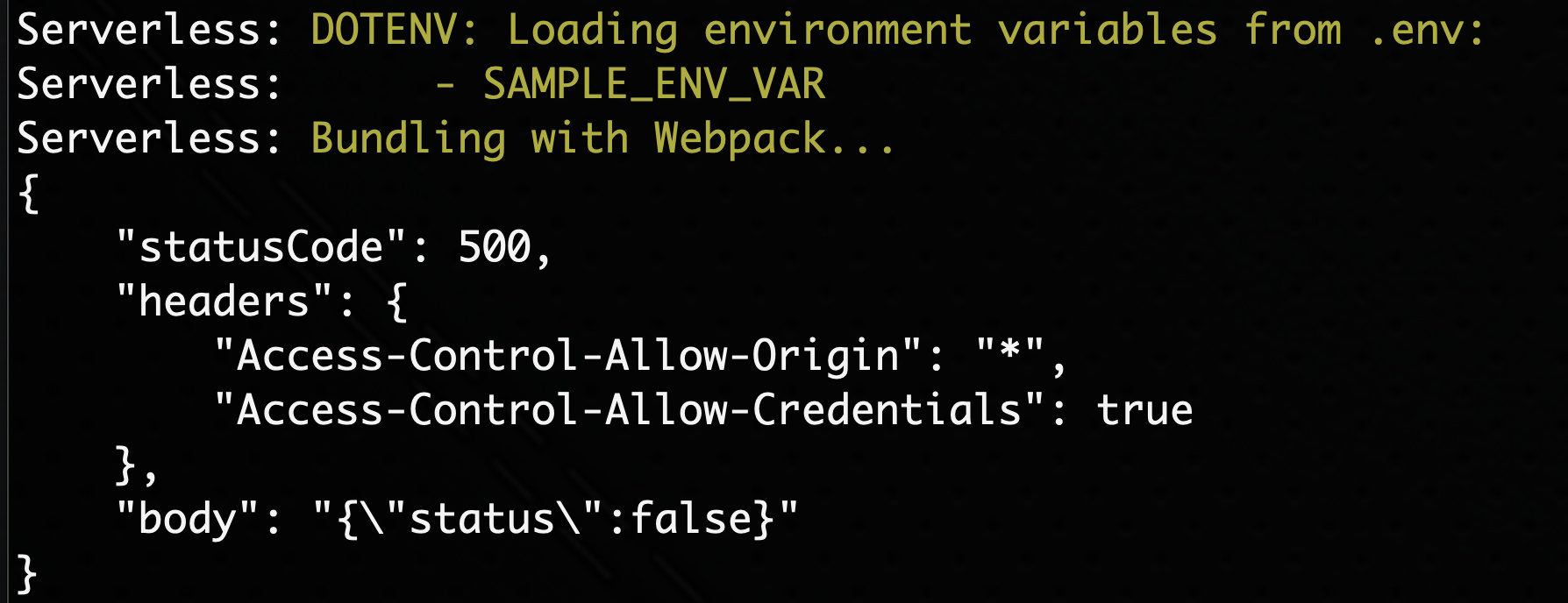 Also, hereās a screenshot of the results when I run āserverless invoke local --function create --path mocks/create-event.jsonā: